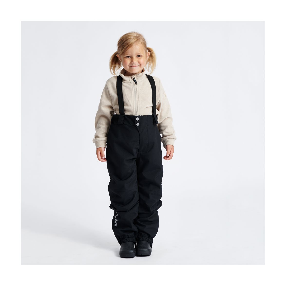 The HURRICANE hard shell pant for kids is made to endure hard everyday outdoor usage. Perfect for pre-school. The trouser is made out of extremely durable nylon material. The pant has fully taped seams, which make them 100% wind- and waterproof. The material offers a high breathing capability that ventilates moist and excess body heat, helping your child to stay perfectly balanced in temperature during play, regardless of activity and outer temperature. These hard shell trousers comes with detachable adjustable braces in the waistline, for a perfect fit. In the leg ending you can open it up with a zipper, which allows an easier on and undressing over the boot. The pant also offers an expandable size and is possible to lengthen with about 3cm in leg length. This enables the pant to be used for more than one season. With a baselayer or thinner mid layer underneath, you are perfectly dressed for the colder season and with even thicker insulation, the pant works perfectly also as winter pant for everyday play or as ski pant. With our HURRICANE hardshell pant, traditional non breathable rainwear (gallon trousers) are no longer needed. We recommend a shell jacket to go with these trousers, offering equally good technical features.