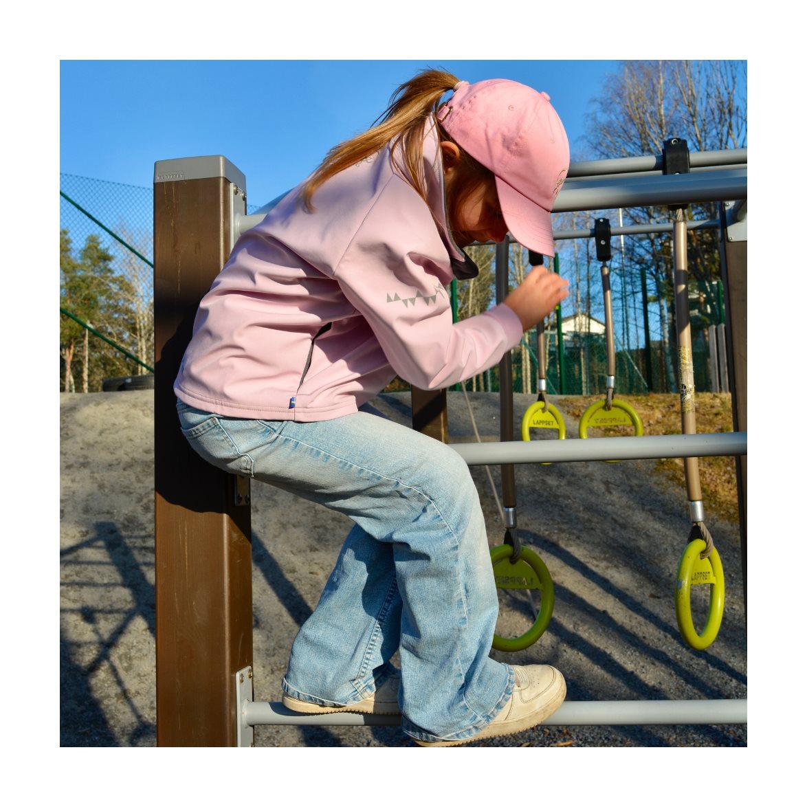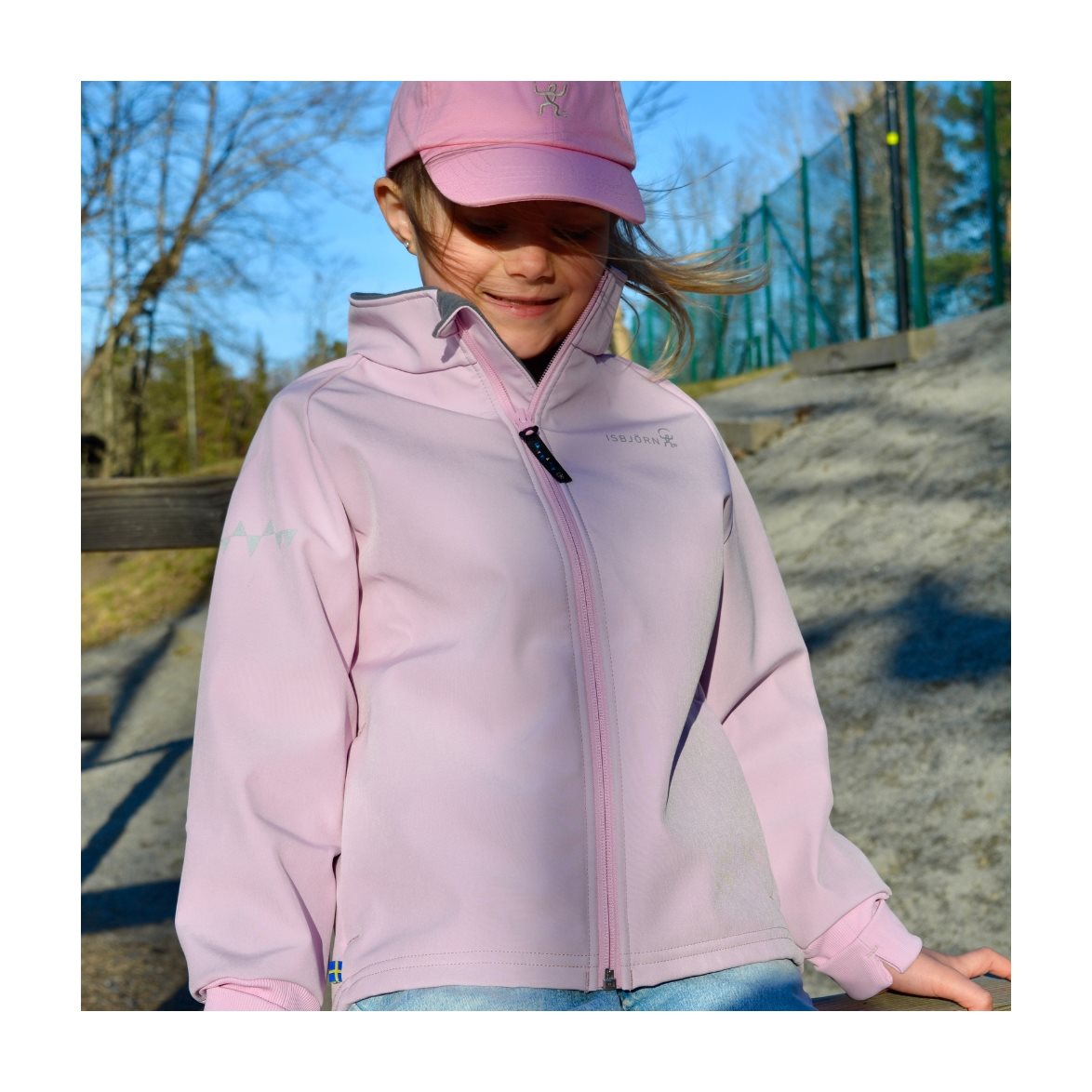 Den här fantastiska vind- och vattentäta jackan i ett mjukt och följsamt 3-lagers material, ger maximalt väderskydd mot vind, lättare regn och kyla Materialet består av en slät utsida i återvunnen polyester och en flossad mjuk insida, även den i återvunnen polyester. Däremellan ligger det ett membran som står emot alla väderelement, som vatten och vind, och även säkerställer att överskottsvärme från kroppen ventileras ut ur plagget vid hög aktivitet. Jackan har en krage med mjuk flossad insida och skydd för dragkedjan. Två fickor framtill och en extra lång mudd i ärmen med tumgrepp, som också möjliggör att förlänga ärmen i takt med att ditt barn växer.