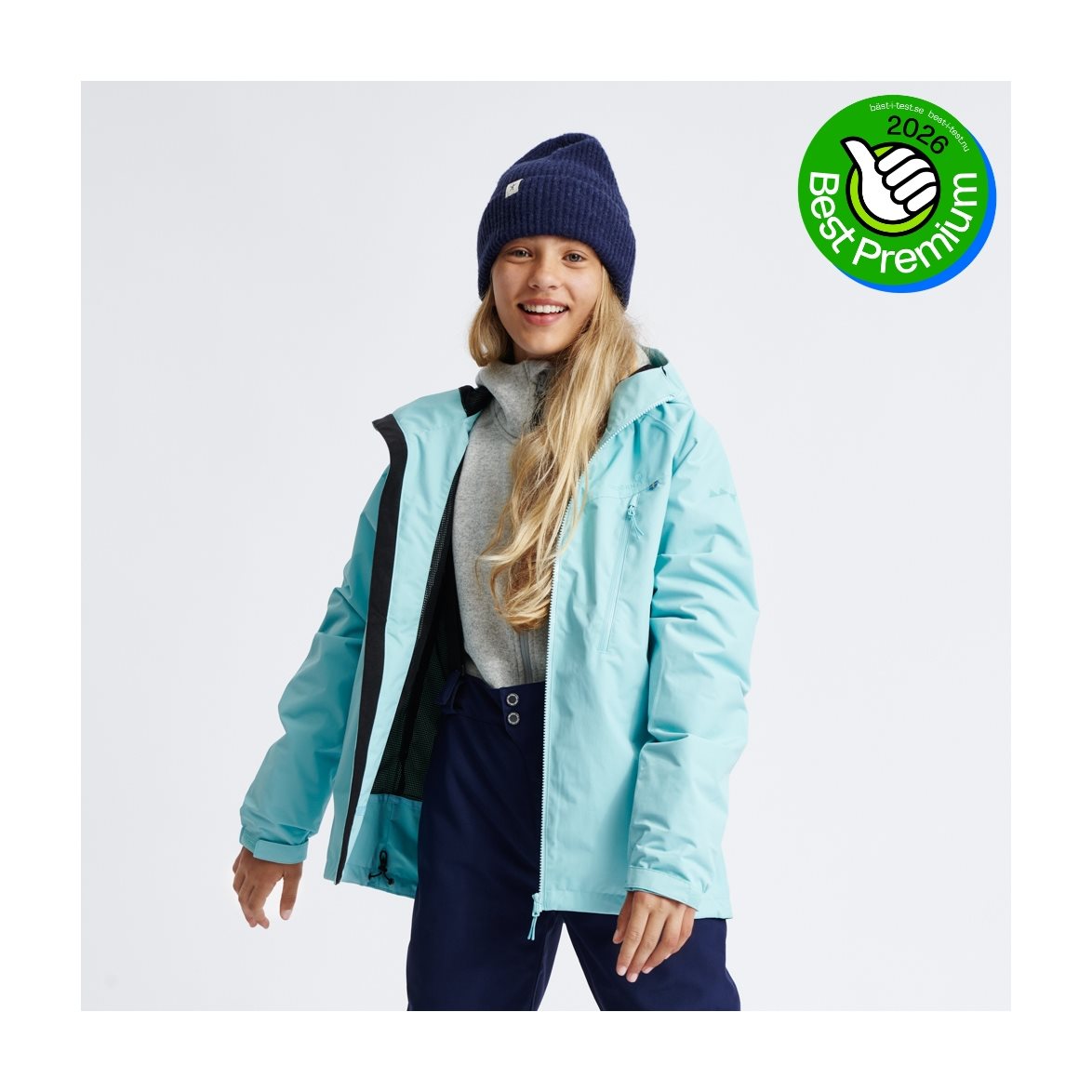Skaljackan är vattentät med tejpade sömmar och tack vare materialets fina ventilationsförmåga (15 000 gr) så ventileras överskottsvärde ut ur plagget, vilket göt att ungdomen håller lagom tempererat oavsett aktivitet och väder. Jackan har en integrerad huva som är justerbar och tillväxtmudd i ärmen som förlänger jackärmen med ca 3 cm, för att kunna användas ännu en säsong.